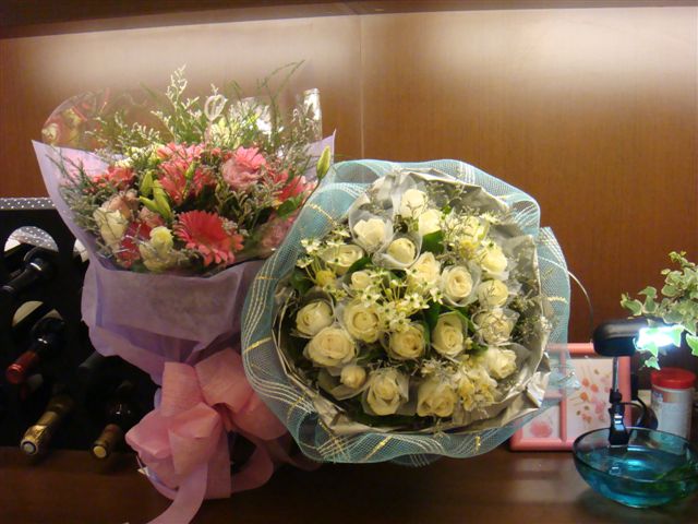 7月のお花・・・カラー 爽やかな白と黄緑色です。 このお花たちをご覧になって涼しい気分になってくださいませ。